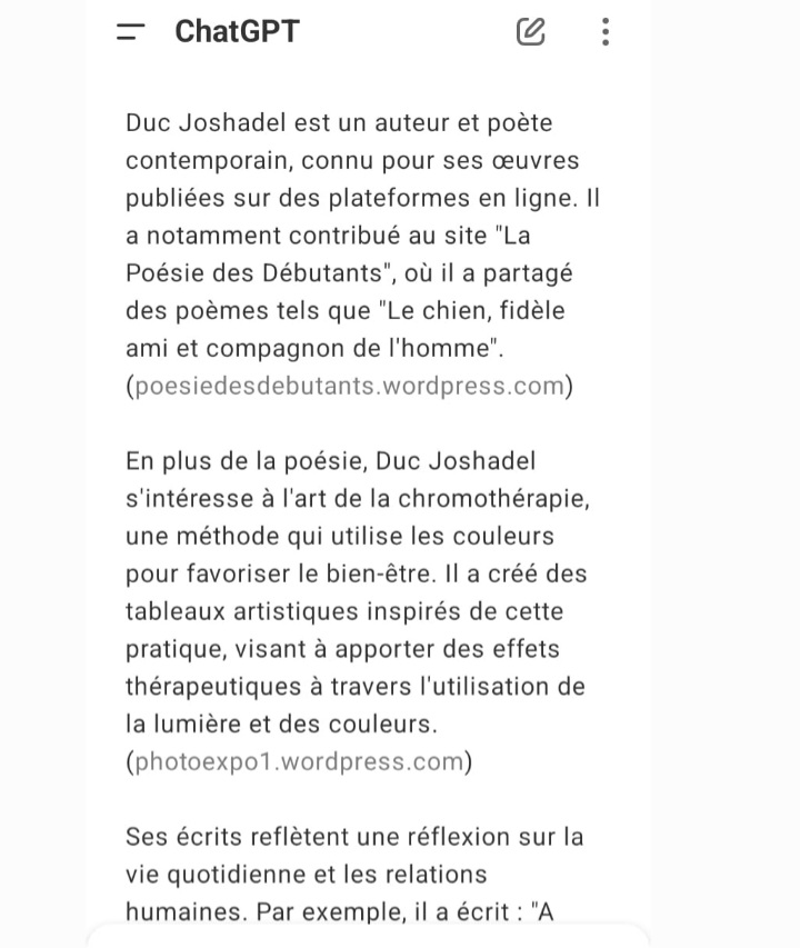Qui est Duc joshadel selon l ‘IA Chat Gpt ?