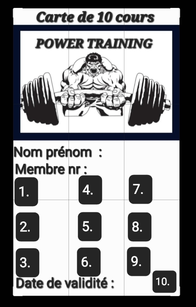 Des cartes de 10 cours de Power training sont à votre disposition.
